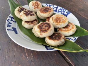 ご近所さんとの4月のポットラックパーティには「お焼き」を作って持っていきました。中身は野沢菜とひき肉・・・だったかなぁ?