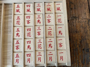 5種類のお茶を「風花鳥風月」に当てはめるお道具も風流ですね。